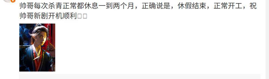粉丝还为他挽尊,说他并不是陷入风波、被雪藏后复工,而是在上次杀青后休息后又开工,跟他以前的拍戏节奏是一样的。