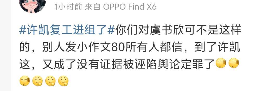 现在看到许凯正常进组,网友反而为某书欣抱不平,质疑起了业内太爱男,对于许凯和某书欣太双标。