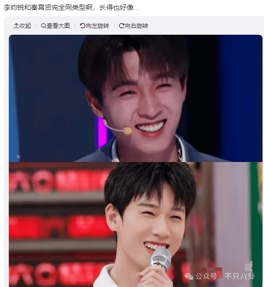 而李昀锐和秦霄贤完全就是同类长相:笑起来眼睛都弯弯的。