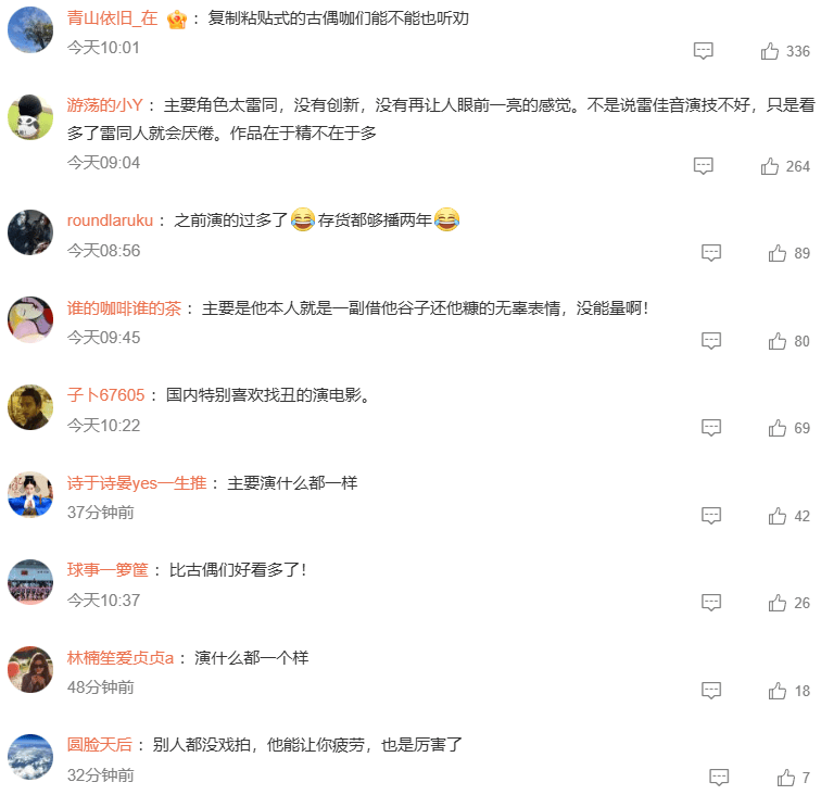 但是与此同时,像张译雷佳音这样的资源太好刷屏让人厌倦的还有不少流量明星,比如刘诗诗杨幂赵丽颖杨紫还有成毅肖战王鹤棣等一大批流量明星,也面临这样的问题。所以网友也希望那些长期在古偶刷屏,演技苍白没有进步的流量明星,也听听劝,不要成为资本的傀儡和工具,也减缓节奏,不要过度消费颜值和粉丝人气吃红利,多充电沉淀,才能提升自己,更上层楼,走得更远更久。