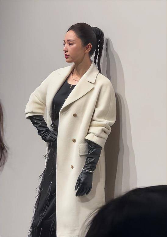 董璇参加的这场秀大概是秋冬新品秀,所以她穿了件厚重的大衣,这么看,真的很难有人能将毛呢大衣穿出高级感。
