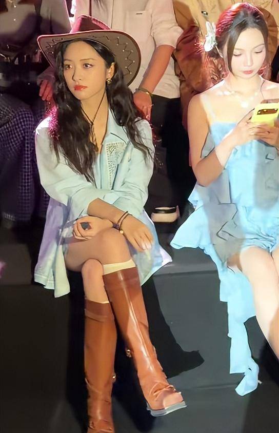 当她坐在秀场从侧面看,还有几分御姐韵味,虽然她身材有些拉胯,但这张脸还是很灵动的,最起码比网红脸好看很多。