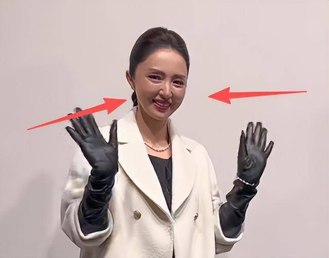 镜头怼近看,她的脸僵硬的好明显,特别是苹果肌和下巴的位置,感觉像被塞进了什么东西一样。