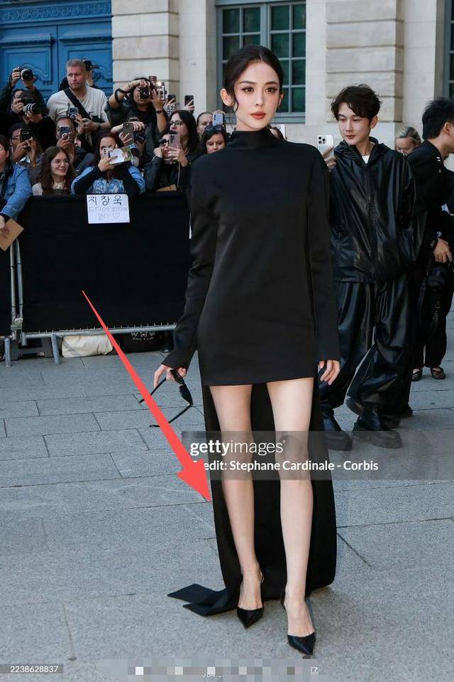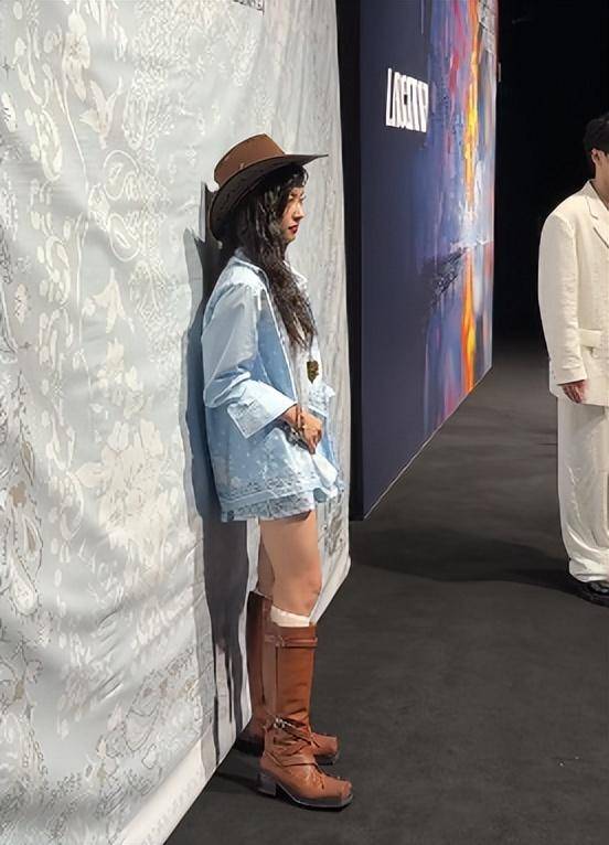 她这套造型虽然是“下半身消失术”,搭配长筒靴修饰腿型,但却仍然显得她这双腿又粗又短。