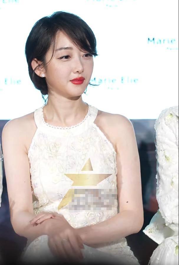 洪欣身穿洁白印花长裙,衬托的她很高贵,像一朵冰清玉洁的白莲花。