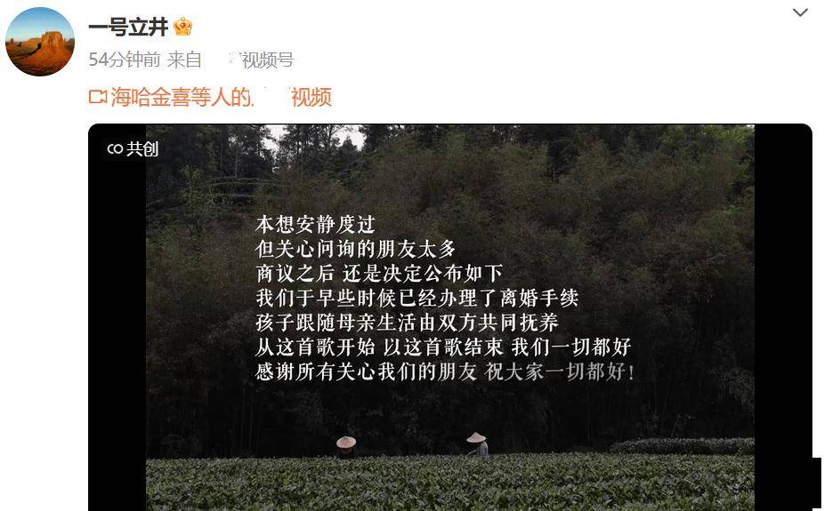 文字大意是,本想安静度过离婚时光,问的朋友太多,两个人商量后就直接官宣了。