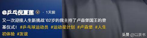 近日,在倪夏莲分享最近日常生活中,除了乒乓球员,还要挑战新的身份——主持人。