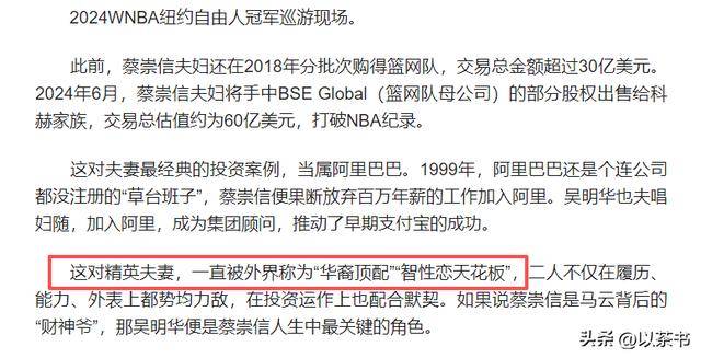 蔡崇信和吴明华的“智性恋”,就是这种环境的产物:他们互相被对方的逻辑吸引,而不是外表或浪漫。