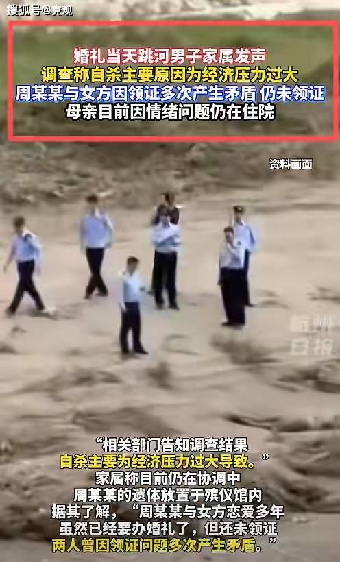 据中国新闻周刊、南方都市报等权威媒体10月14日报道,相关部门经调查后公布,新郎周某某(为保护隐私,隐去全名)跳河的主要原因系“经济压力大”。
