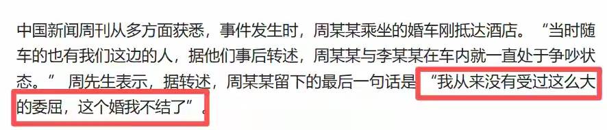 家属坚持查看行车记录仪,背后有着明确的事实依据。周某某的父亲在接受中国新闻周刊记者采访时透露,事发当天,男方随行人员事后回忆,周某某与新娘李某某(为保护隐私,隐去全名)在接亲车辆内曾发生激烈争吵。