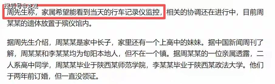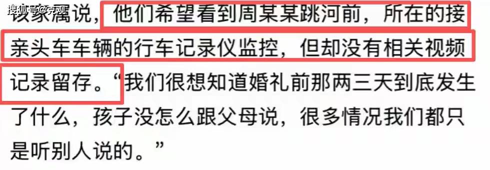 这一结论为事件提供了关键指向,但周某某的父母及亲属对此仍存疑虑,他们明确提出希望查看接亲头车的行车记录画面,以还原事发当天的完整经过,遗憾的是,目前并无相关视频记录留存,这也让家属的诉求暂时无法得到满足。
