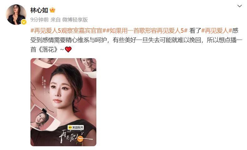 值得注意的是,演员林心如加入本季节目担任观察室嘉宾。