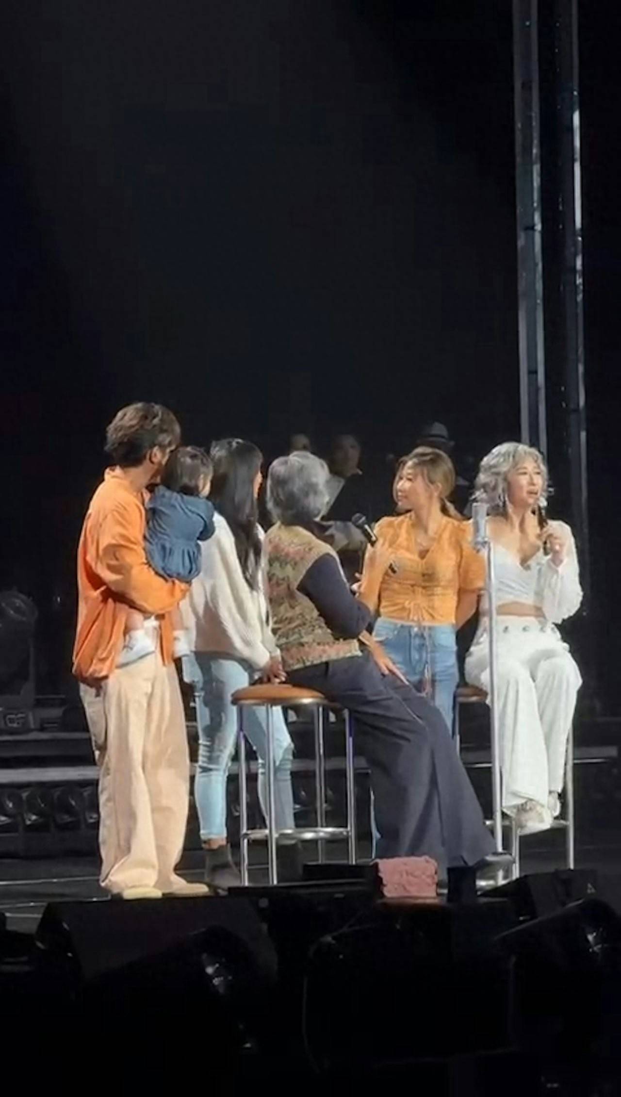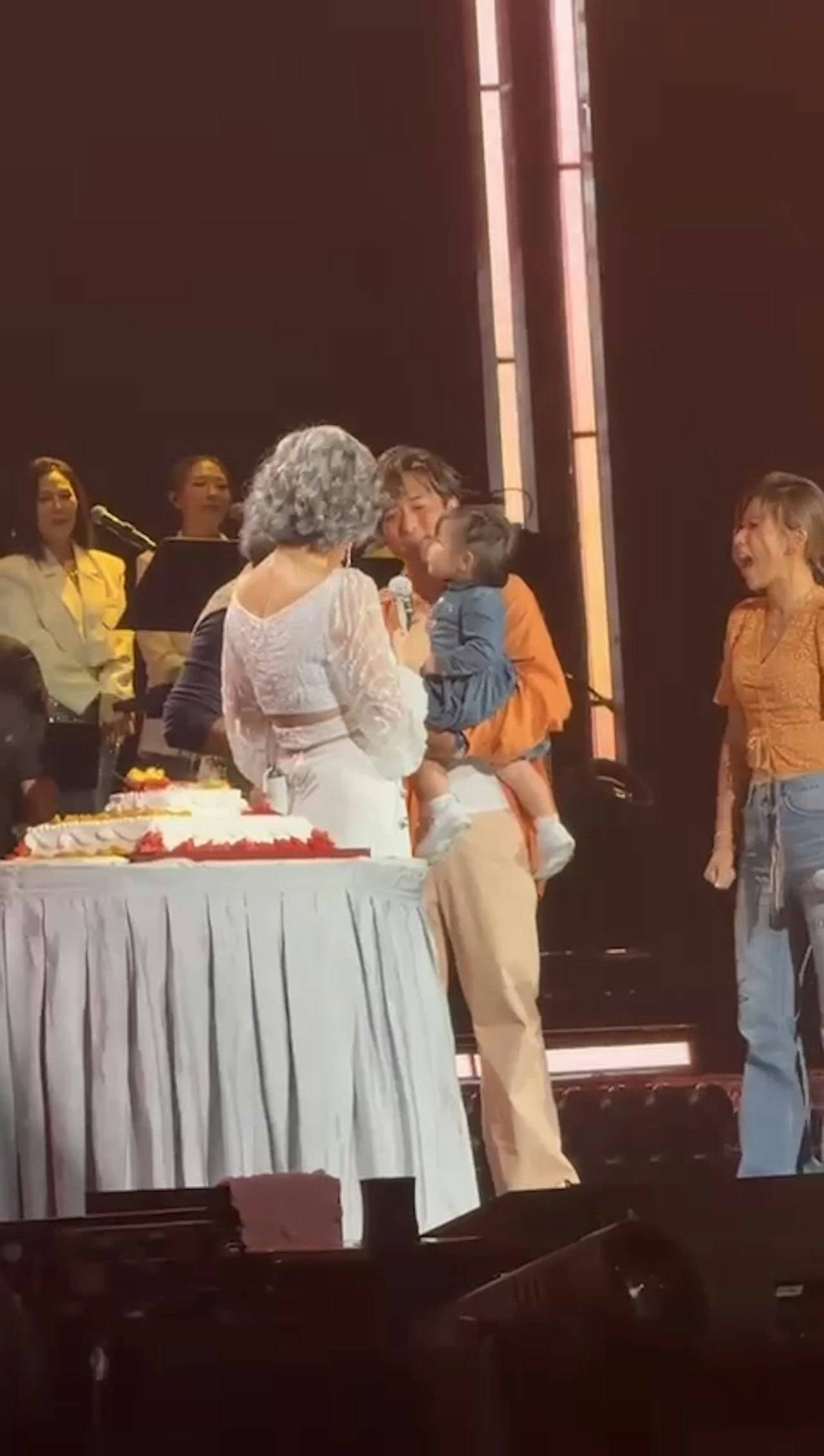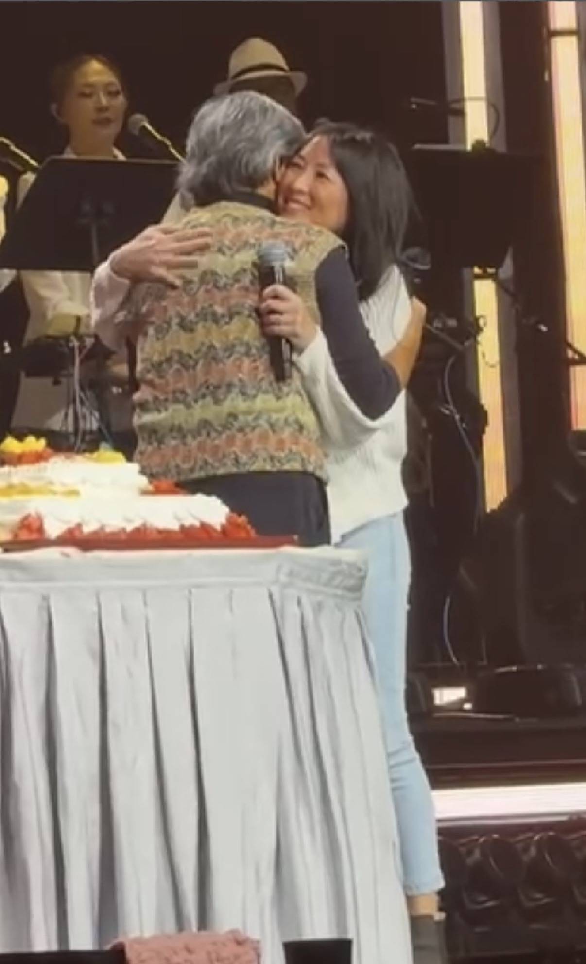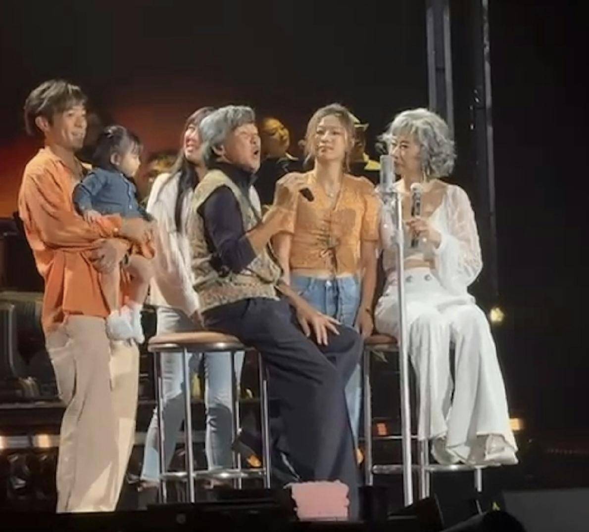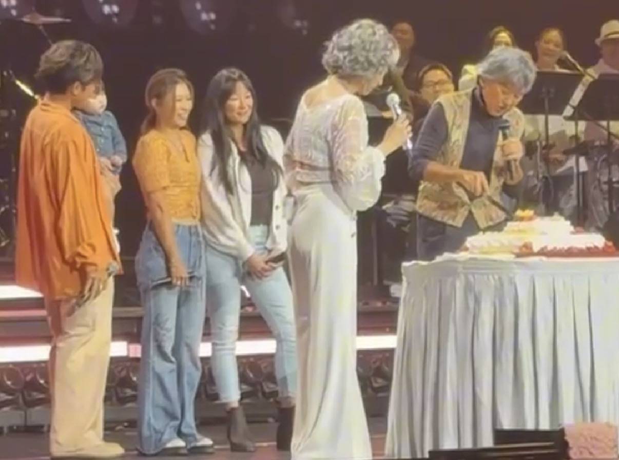 林子祥与叶蒨文以夫妻的名义在香港红馆举办一连五场的演唱会,在进行到第四场的时候,恰逢林子祥78岁的生日,所以这一场有一个特别的庆生环节。除了现场大唱生日歌送祝福,还有不少乐坛的友人包括刘德华、郭富城、古巨基等歌手录制视频为林子祥送上生日祝福之外,最特别的莫过于,林子祥的家人集体登上红馆舞台,为他庆生。儿子、儿媳妇来了,就连小孙女也来了,而女儿还专程从国外赶回来,一家人罕见同框其乐融融。