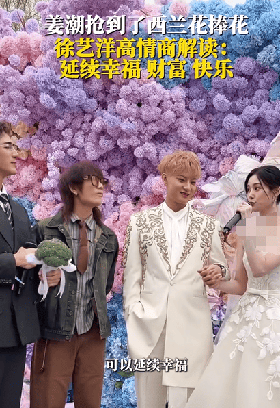 10月16日,在黄子韬、徐艺洋婚礼现场,姜潮抢到了西兰花捧花。徐艺洋解读西兰花捧花,称:西兰花可以寓意延续幸福、财富、快乐等所有美好的东西。姜潮回应:西兰花也是自己儿子、女儿最爱吃的,这是我给我女儿抢的。