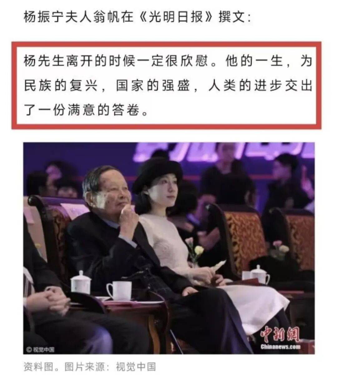 作为物理学界的泰斗,杨老曾经把翁帆誉为是“上帝给他的最后一份礼物”。这句话足可见翁帆在杨老心中的份量。