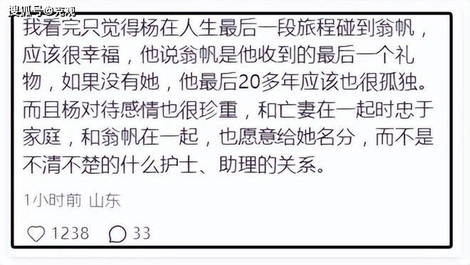 杨振宁先生不止在学术研究上大有成就,对方感情也十分认真。和亡妻在一起时忠于家庭,和翁帆在一起时也愿意给她名分。