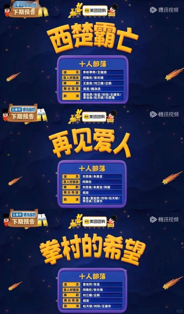 这个团还有一点很有意思,那就是真把团战当团战啊,每个作品几乎看不出谁是主创小队,上场的都叫主演,这到最后怎么评喜剧小队啊。