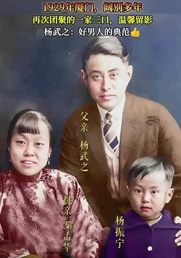 杨振宁的父亲杨武之,是一名数学家、教育家,是中国早期从事现代数论和代数学教学与研究的学者,曾考取安徽省公费留学,在美国芝加哥大学留学深造,并获得博士学位,回国后,曾先后任教于厦门大学、清华大学、同济大学、复旦大学。