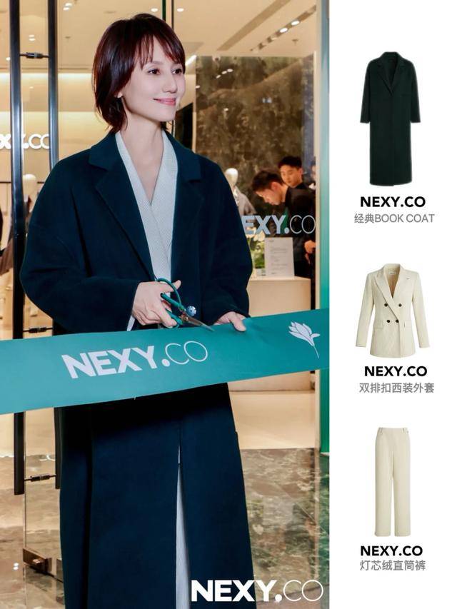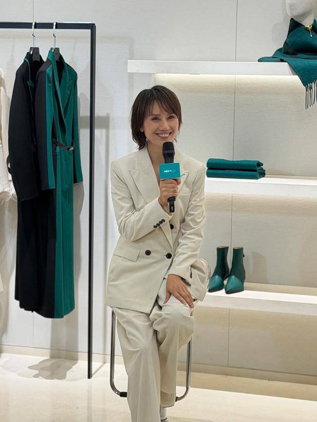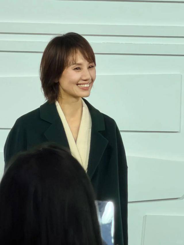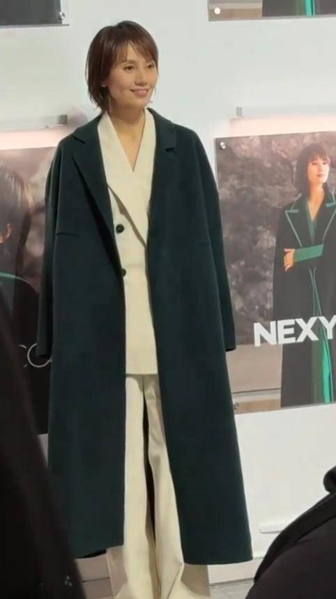 当天太原的气温不算高,袁泉的穿搭既优雅又务实。她身穿一身白色灯芯绒西装套装,内搭简约打底,外面套了一件墨绿色长款呢子大衣,剪裁利落又高级,既符合品牌活动的正式感,又兼顾了保暖需求。