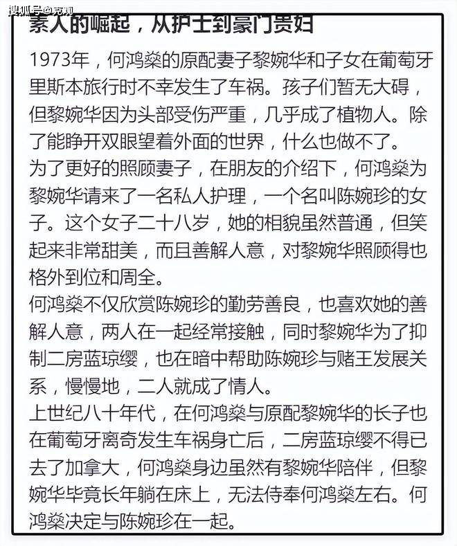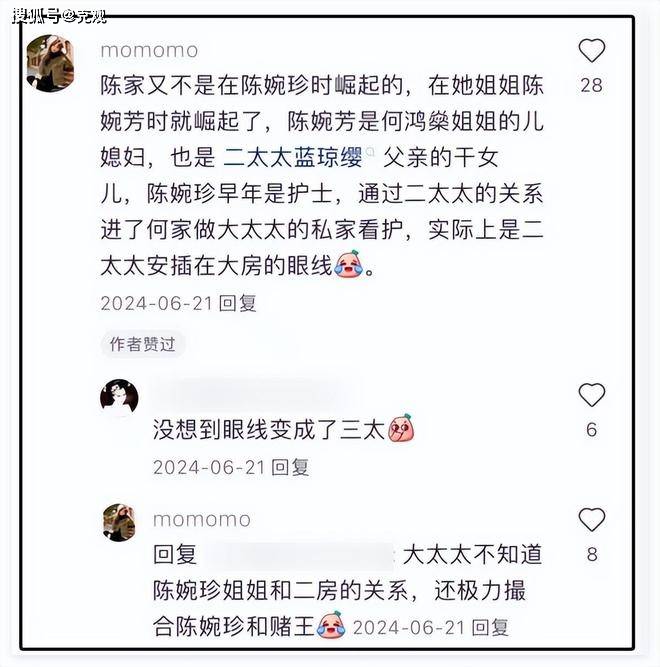 很多人以为是陈婉珍的善良努力得到了何鸿燊的喜爱,也改变了陈家的命运。可事实上,陈婉珍的姐姐陈婉芳是何鸿燊姐姐的儿媳妇,也是二太蓝琼璎父亲的干女儿。陈婉珍之所以能进入何家,也是二太的关系,被指是二太安插在大房的眼线。