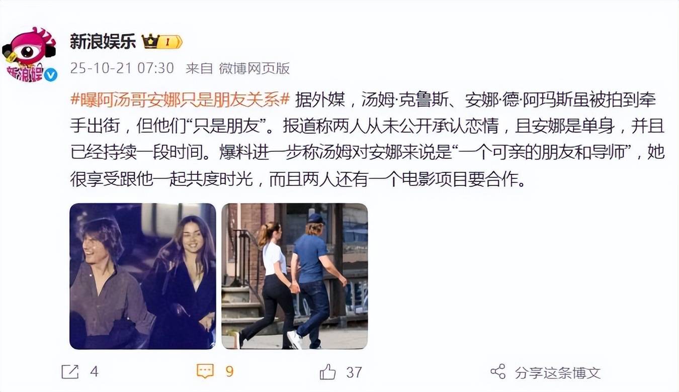 或许,正如某网友所言:“最成功的宣传,是让观众相信自己发现了秘密。”从“恋情坐实”到“只是朋友”,阿汤哥与安娜的故事,从来不是一段破碎的罗曼史,而是一场从始至终都围绕大银幕展开的、精准无比的共谋。