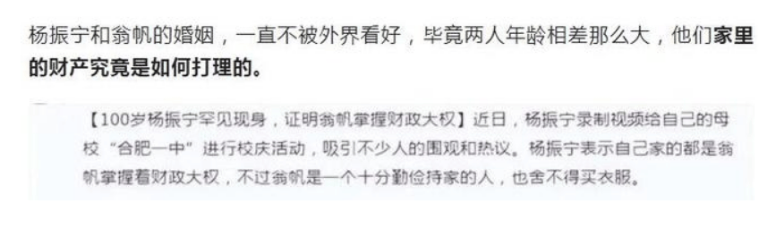 所以说杨振宁先生把钱和资产交给翁帆打理,那不是很正常的吗