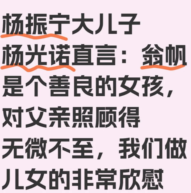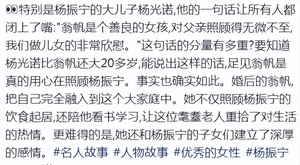 简单说,杨振宁的孩子们对于翁帆的评价极高