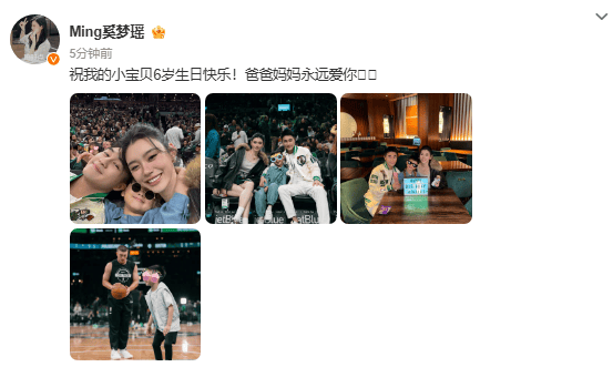 23日,奚梦瑶在社交平台晒出一家三口合照,庆祝儿子6岁生日快乐“祝我的小宝贝6岁生日快乐!爸爸妈妈永远爱你”
