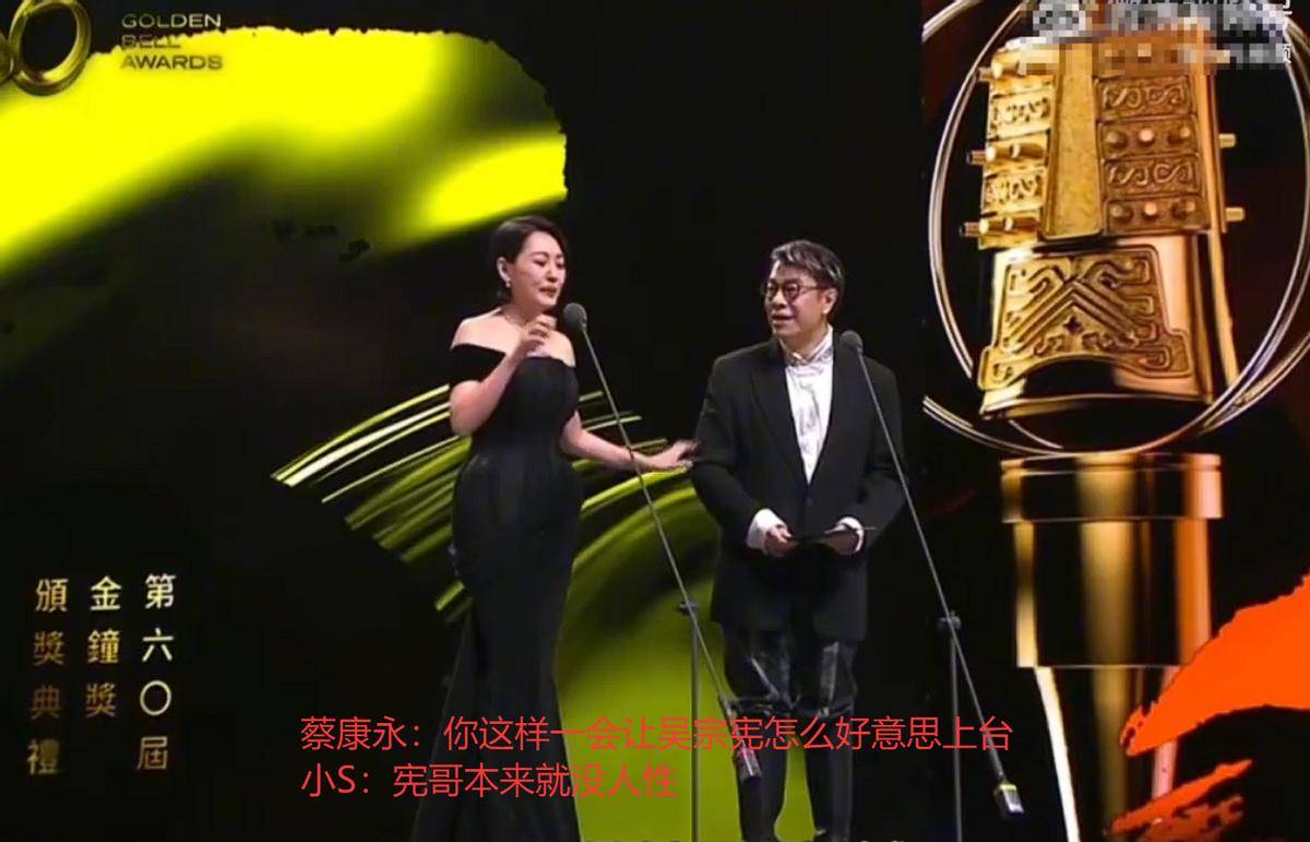 当蔡康永调侃台下坐着的陈汉典,没靠谁就能入围的时候,小S半开玩笑的称,陈汉典靠的是吴宗宪。