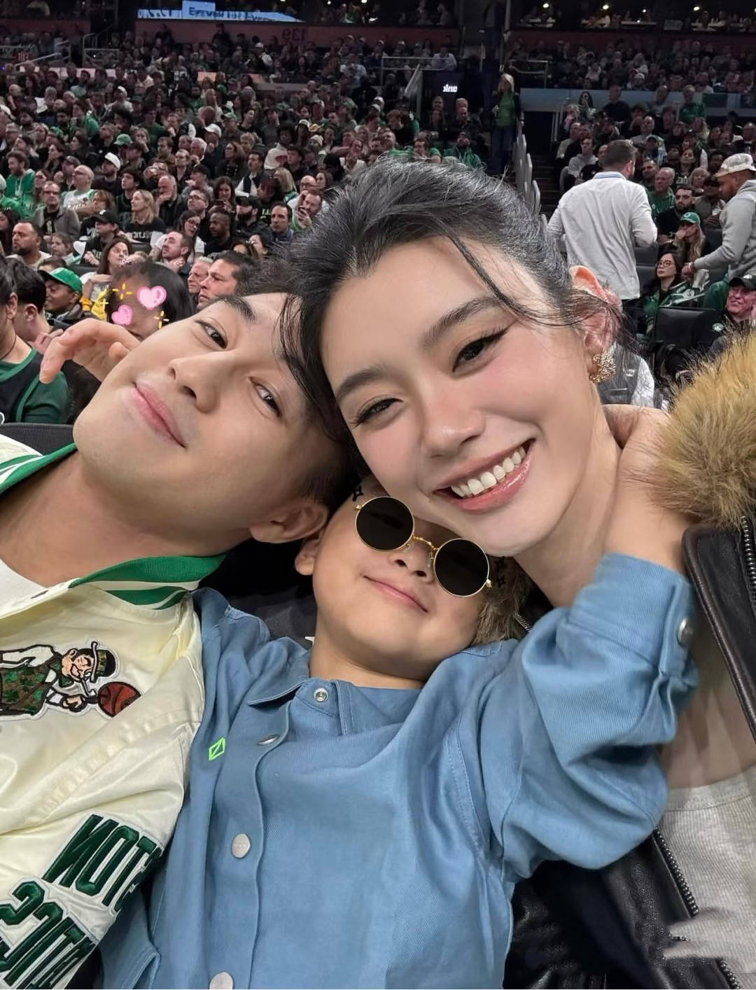 一家三口搂在一起拍了大头照,儿子带着圆形边框的小墨镜,多了几分搞笑和调皮。奚梦瑶一张高级脸,也变得越来越温和。