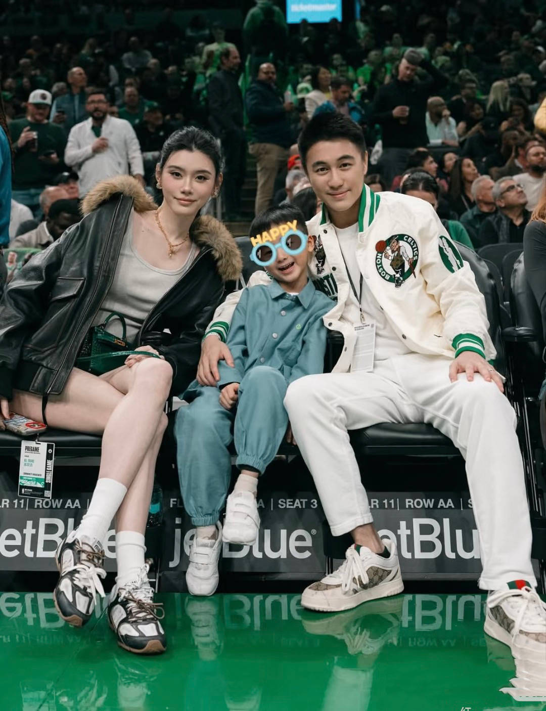 老公何猷君穿白色棒球服、配了白色牛仔裤,简单又干净、满是青春少年的气息。父子俩的搭配都很有活力,奚梦瑶穿皮衣外套秀美腿,贵气十足。