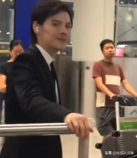 而在这次机场照里,他主动帮路人搬行李的细节被拍下来。