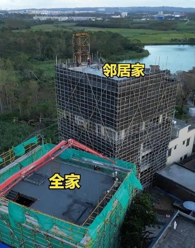 话说回来,全红婵老家建新房。邻居比他家高出那么一大截,真是有点不能忍。如果正常邻居盖房子就算了,这架势分明是想做酒店,比人家高那么一大截,让人看着心里不痛快!