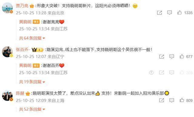黄晓明昨天发文官宣自己的新片《阳光俱乐部》上映,用上了自己在娱乐圈的人脉,数十位明星赶来评论。