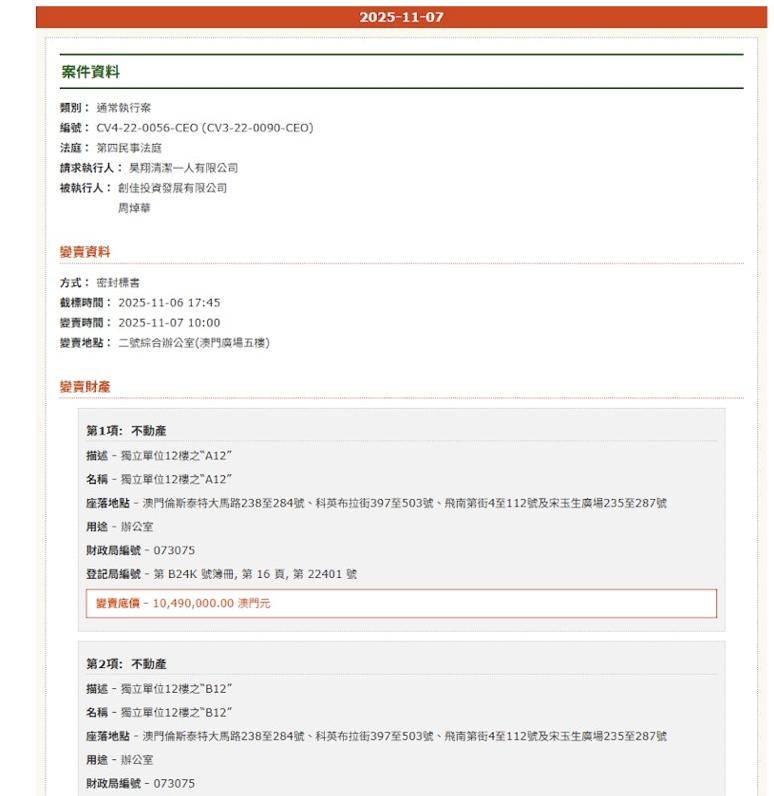 洗米华此次被拍卖的房产全部的用途都是以办公室为主,也就是他昔日的大本营太阳城所用来办公的地方。这16套不动产,每一套的拍卖起拍价为430万到1024万澳元不等,不作公开投标,而是以密封标书的形式进行拍卖。而房产被拍卖,是因为欠债未能还清,遭到债主向法院申请,将其名下的资产进行拍卖,以此用以还债。事实上,这也不是洗米华名下的资产第一次拍卖,2023年7月的时候,洗米华及其相关的大得利集团的资产就遭到变卖,当时涉及了5个商业单位,以及31个车位,总值为6亿澳元。