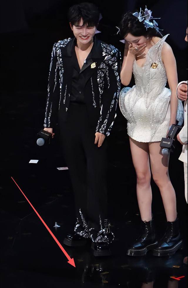 可此时发生了一件尴尬的事情,因为舞台上的地面设计是“镜面”,所以即使台上的灯光再暗,依旧可以反光。
