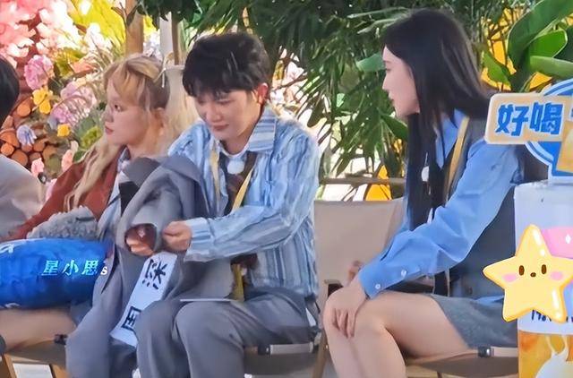 在玩过游戏之后,当孟子义再次回到周深旁边时,周深又是很自然的把外套给孟子义递了过去。