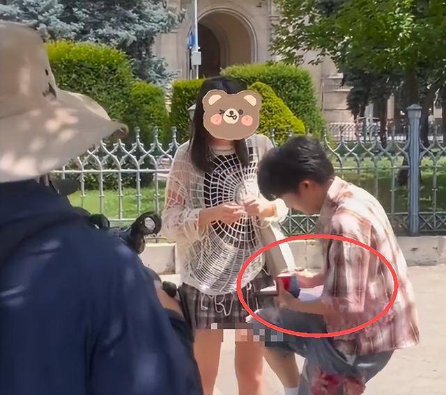 所以,在蹲下去的瞬间,周深立马把头扭向了一边。