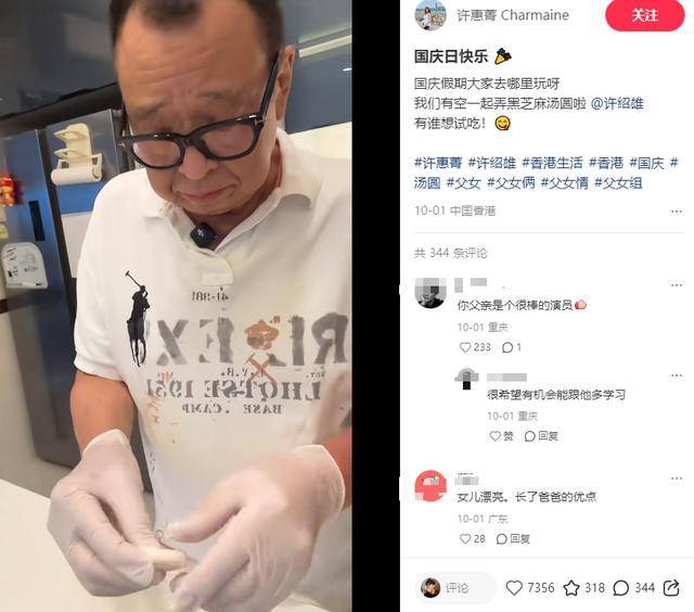 就在国庆节的时时,许绍雄还在跟女儿合拍短视频。