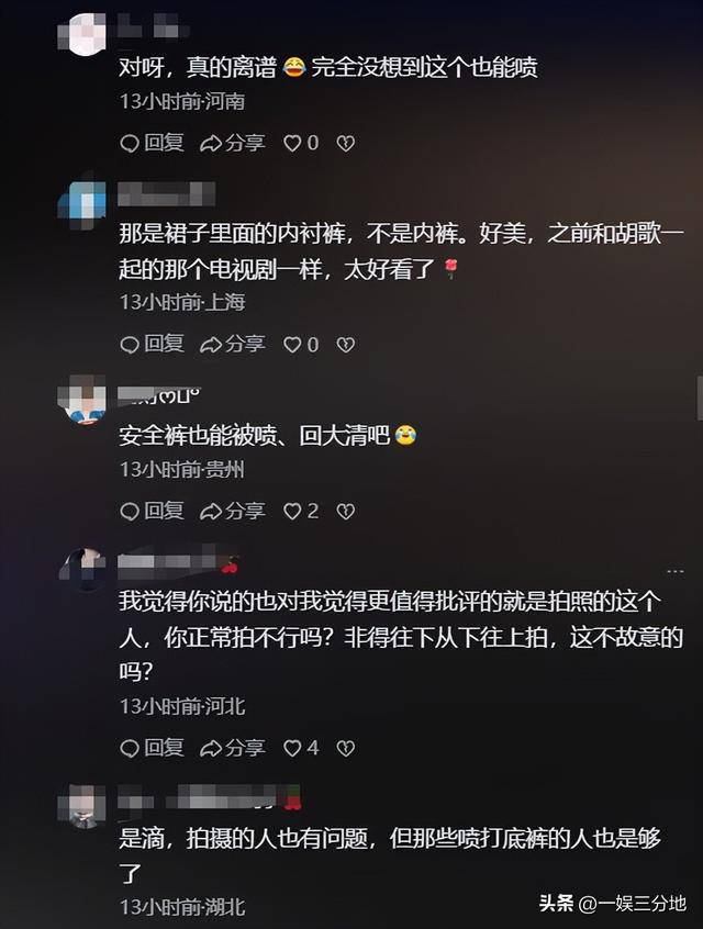 虽然穿着安全裤,但还是要注意点,毕竟没有哪个观众,近距离看到明星,不会拍照。
