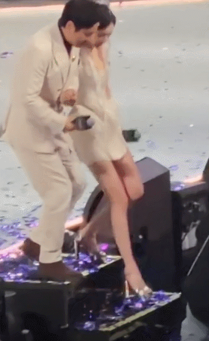 那僵硬的腿,完全就是假肢,怪不得看了大屏幕的杨幂和周深,笑得合不上嘴巴了。