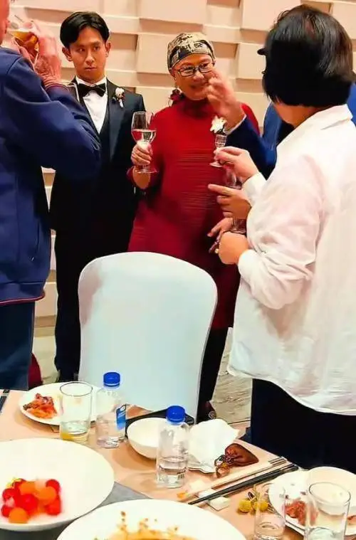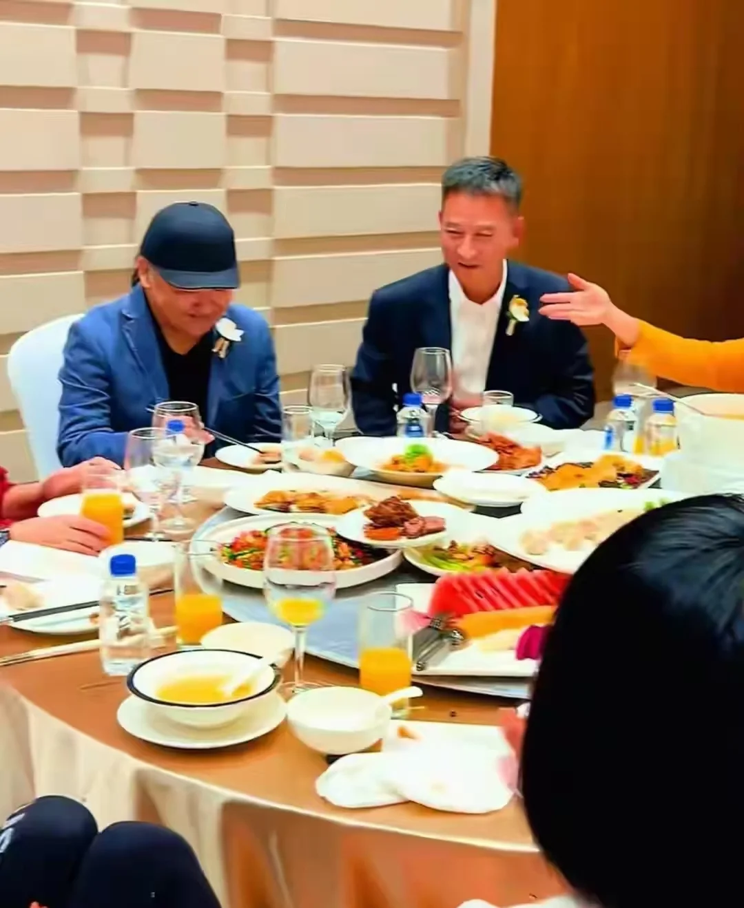 刘欢、卢璐和男方父母坐一桌,男方父亲笑得开心,刘欢却低垂着脑袋,两人状态形成鲜明对比。