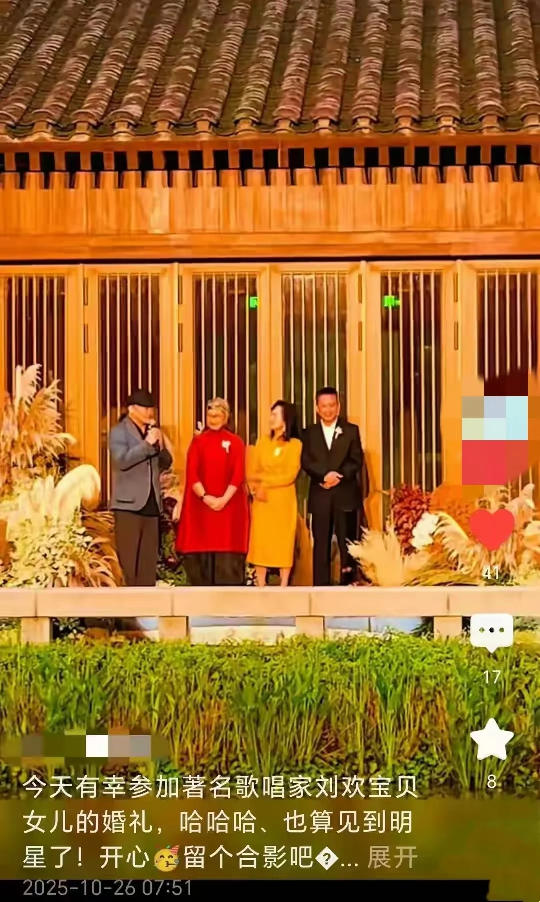 10月26号一大早,有个女网友分享了一段参加刘欢女儿刘一丝婚礼的视频。