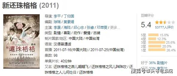 2011年,再度翻拍的《新还珠格格》更是遭遇“惨烈”批评,分数更低。