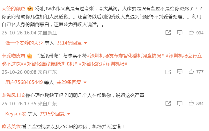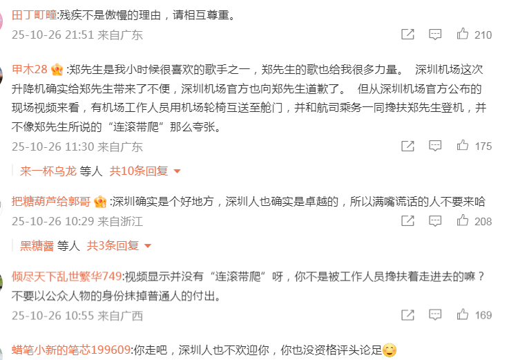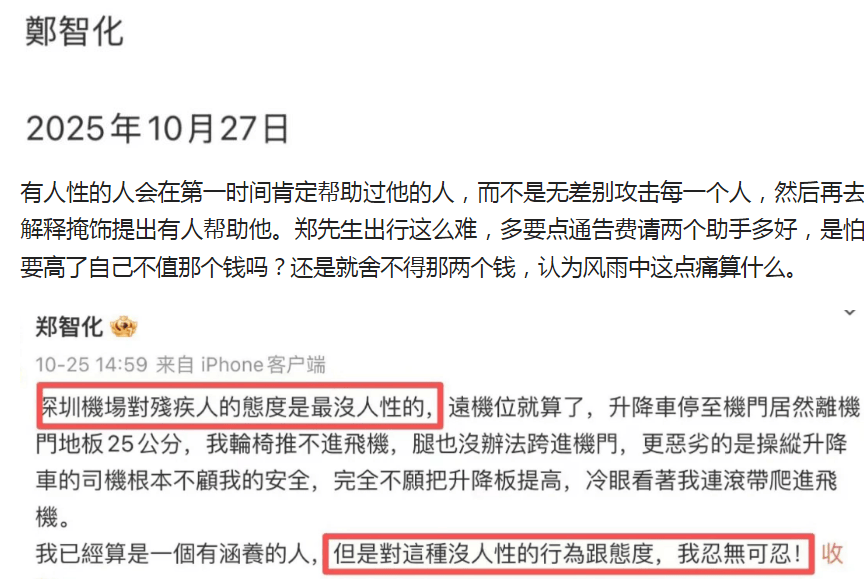 既然郑智化认为大陆的问题多,那就在台湾开演唱会就好了啊,还不用辛苦跑来跑去。机场发布的视频,可跟您的文字描述完全不一样呢,连轮椅都是机场提供的,这么多人伺候上机的,跟您描述的可不同啊,机场的两个男工作人员应该把您抱上飞机才行对吗?但是机舱通道很小抱上去也怕磕撞到您,国内安检没有问题