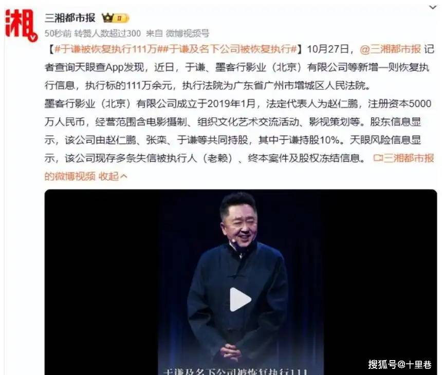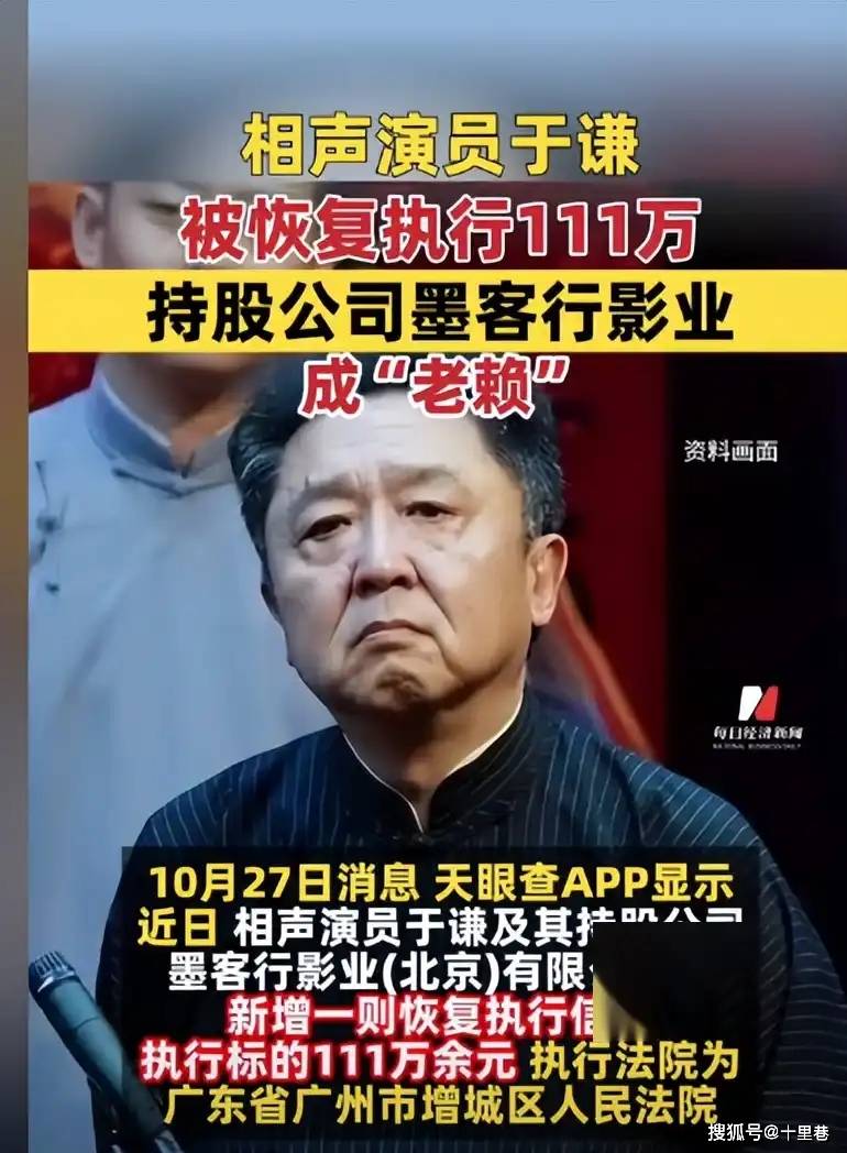 近日,关于于谦的热议话题并不是他的相声表演或影视作品,而是因持股的墨客行影业被广东省广州市增城区人民法院执行111万余元。这一消息一经曝出,立刻引起了网友的热议,许多人猜测这是否意味着于谦遭遇了财务危机。