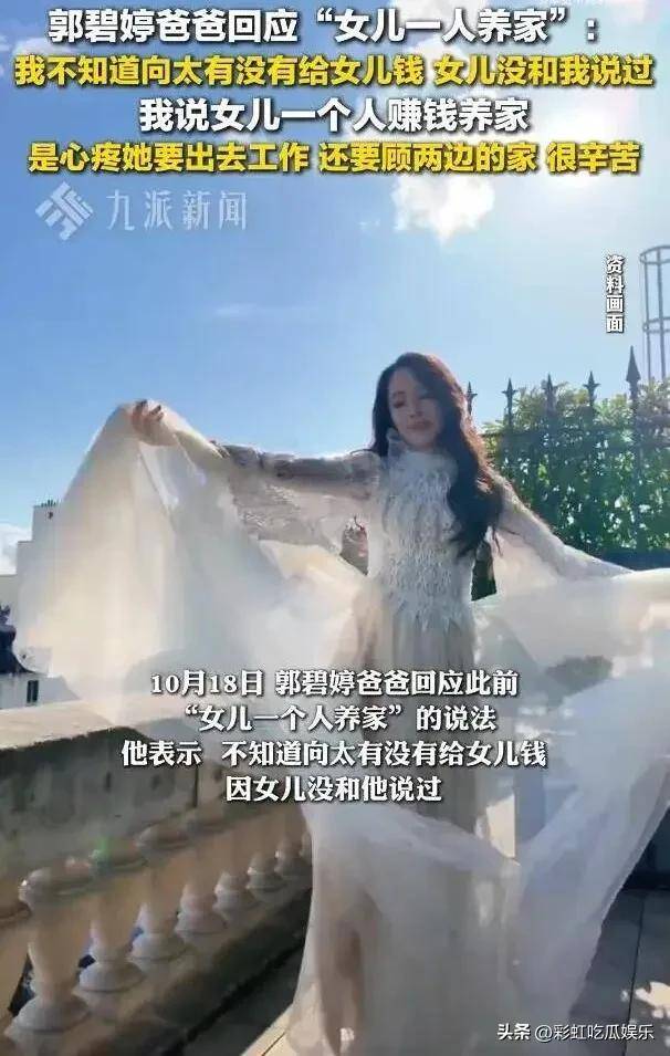 一入豪门深似海,在郭碧婷身上体现得淋漓尽致,明明是自己在还房贷和养孩子,自己赚钱为父亲尽孝,却被婆婆冷嘲热讽贴补娘家。郭碧婷爸爸也说,不清楚向太有没有给女儿钱。