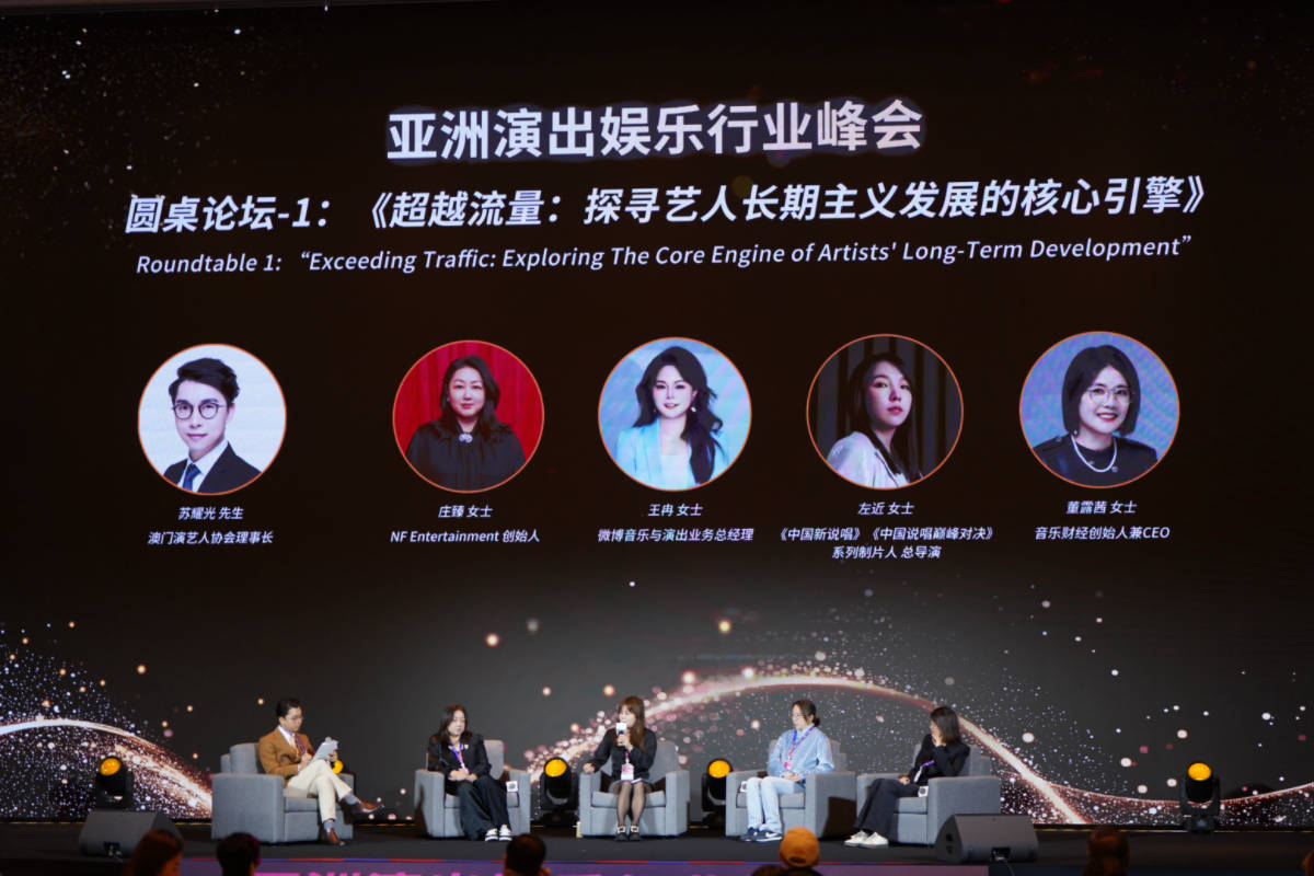 峰会更是邀请到诸多行业领袖:微博音乐与演出业务总经理王冉;《中国新说唱》、《中国说唱巅峰对决》系列节目,制片人和总导演左近;音乐财经创始人兼CEO董露茜;NF Entertainment创始人庄臻;澳门演艺人协会理事长苏耀光,共同探讨《超越流量:探寻艺人长期主义发展的核心引擎》——在流量海啸下,艺人如何长红?讨论锚定「演技×作品×艺术」坐标:演技端,微博「点歌台」让JJ、张杰现场加歌,把粉丝互动练成临场应变;作品端,左近透露《新说唱》用“少年屠龙”故事模型选人,强调“十首好歌”不如“一首击中时代情绪”:艺术端上面,陶喆旧歌因“就业迷茫”共鸣再冲榜,证明艺术人格需持续输出价值观。平台三驾马车——媒体、新粉、宣发——把流量变“留量”,用热搜滚雪球式沉淀口碑,将瞬间热度转化为不可替代的长青IP。