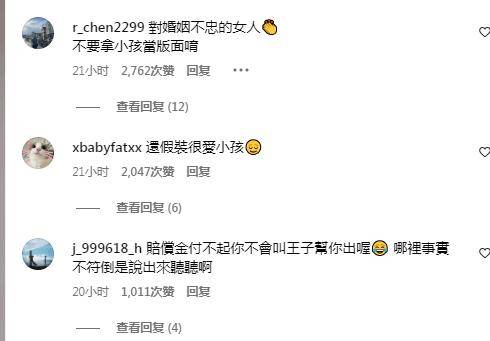 网友还挖出一则贴文,粿粿今年在520当天,公开晒出与王子的合照,而王子更留下“可可爱爱”的回复,当时外界认为只是艺人之间的互动,如今丈夫范姜彦丰指控两人出轨,显得格外讽刺。