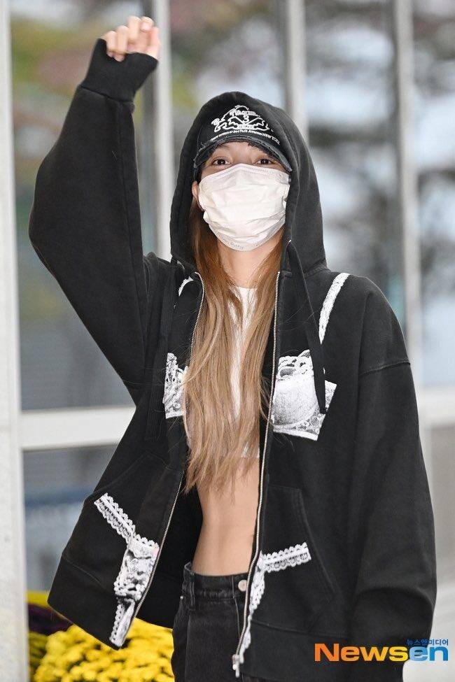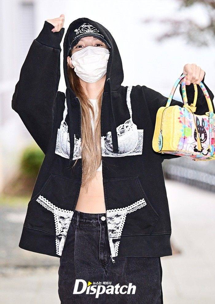 事情发生在10月31日,BLACKPINK成员们集体现身机场,正准备动身前往下一场《BORN PINK》演唱会。当Lisa从座驾中走出来时,她那身出人意料的行头瞬间成了全场焦点——一件黑色连帽卫衣,上面明晃晃地印着清晰的“内衣”图案,内搭一件短款上衣,下身则是一条常规的黑色牛仔裤。